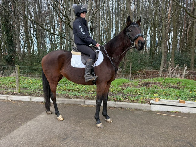 Grace is snaffle mouthed with fab breaks, she is forgiving and completely unflappable. Grace moves nicely off the leg, has a great canter and will cater for the beginners/nervous amongst us.